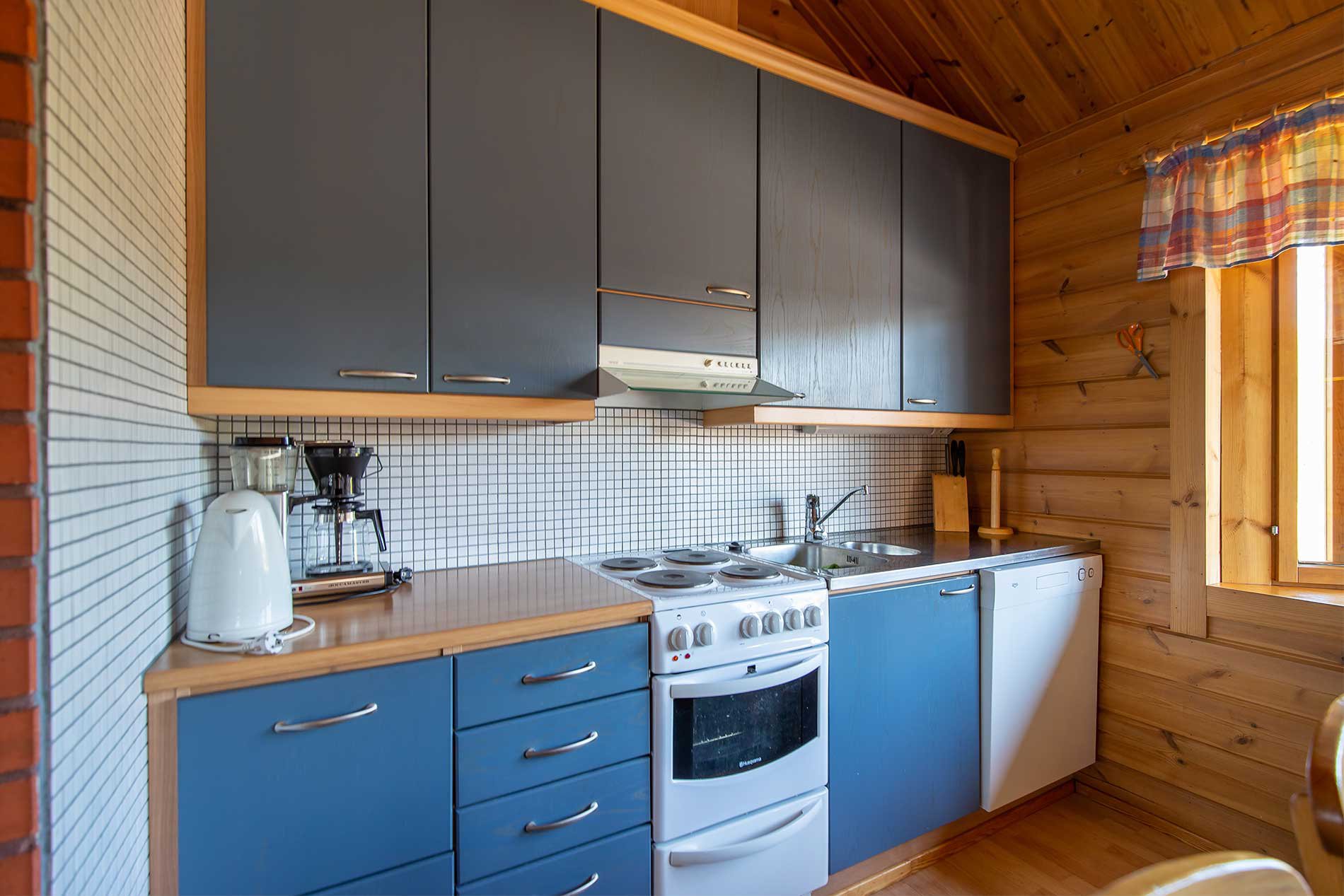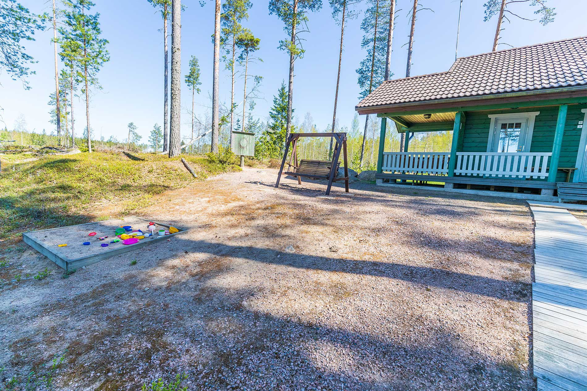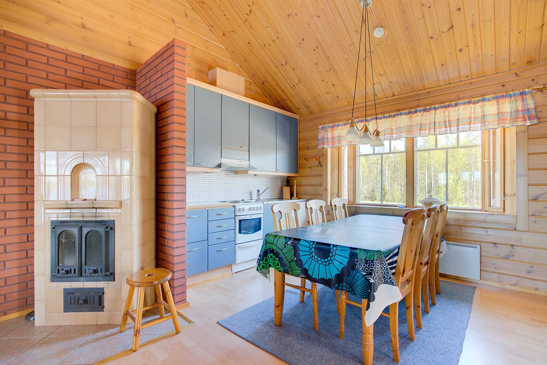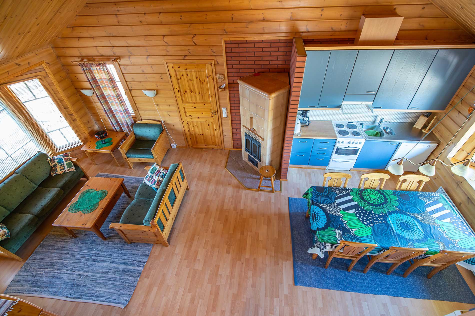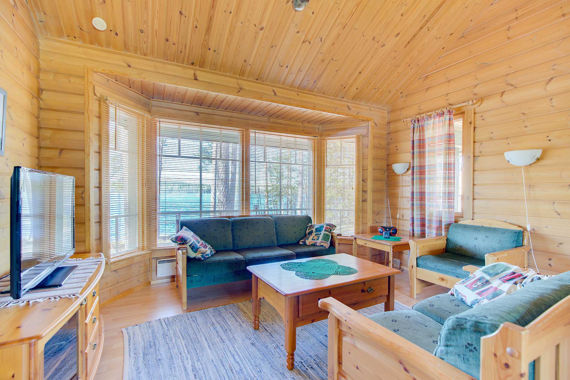 Mökki tarjoaa majoitustilaa jopa kahdeksalle hengelle, ja sen suunnittelu on mietitty kodikkaaksi ja toimivaksi. Täysin varustellussa keittiössä voit loihtia herkullisia aterioita, ja olohuoneen varaava takka luo mukavan tunnelman rentoutumiseen iltaruskossa. Mökissä on kaksi makuuhuonetta, joissa ensimmäisessä on parisänky ja toisessa kaksi erillistä vuodetta. Tilava parvi tarjoaa lisää nukkumapaikkoja neljälle hengelle. Rentoutuminen on muutoinkin taattu, sillä puulämmitteinen sauna odottaa päivän päätteeksi, ja oman terassin sekä kotakeittiöllä varustetun huvimajan avulla voit nauttia ulkona oleilusta ja grillaamisesta.