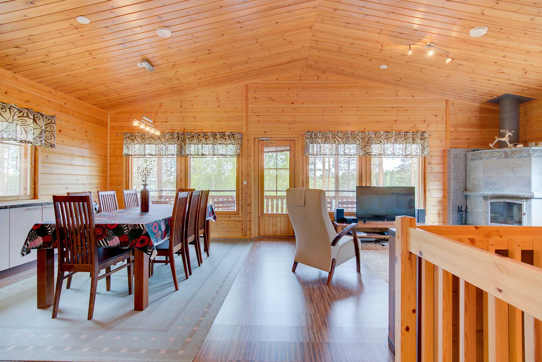 Isohauki on rakennettu ajatellen mukavuutta ja käytännöllisyyttä. Mökki majoittaa jopa kymmenen vierasta ja tarjoaa monipuoliset tilat rentoutumiseen. Kolmessa makuuhuoneessa on yhteensä kuusi vuodepaikkaa, ja alakerrassa sijaitseva takkahuone voi muuntautua tarvittaessa lisävuodeksi. Avara olohuone yhdistää ruokailutilan ja hyvin varustellun keittiön, joissa on kaikki tarvittava upean loman viettämiseen. Hyvin tilatut saunat ja modernit mukavuudet, kuten äly-TV ja astianpesukone, tekevät lomastasi vaivattoman.